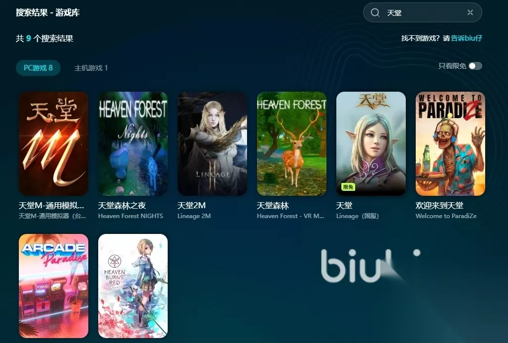 使用biubiu的过程也十分便利,玩家到时只需去通过软件的首页搜索找到喜欢的游戏,然后对其进行加速即可,一键操作即可完成,上手门槛上非常的低,新人玩家到时候也不用担心操作方面的问题,关键就在于支持的游戏种类多,天堂以及各大主机和PC作品都是可以的,让玩家不需要再频繁去更换其他的加速工具。
