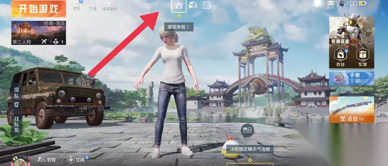 和平精英家园系统怎么进 答:点击人物上方房子图标进入 详情介绍: 1、进入游戏,点击人物头顶的房子图标。