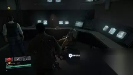 step4.两人来到一个黑暗的房间,使用照相机后按3键开启夜视模式。 然后调查监控的键盘。 监控视频内看见了布兰科波恩博士为暗卫军芳塔娜进行丧尸实验,而且芳塔娜强求布兰科波恩博士要尽快完成研究,此外芳塔娜还命令将一个“特殊”的实验体与其他普通实验体放在一起。