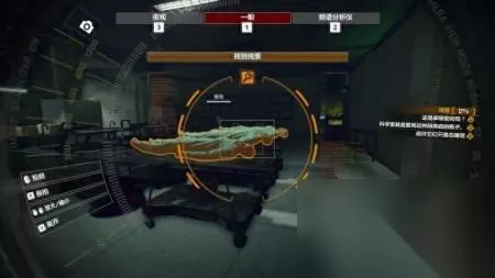 step7.穿过焚化房之后就要进入一个太平间来调查。 对手术台上的三具尸体(或许它们只是在睡觉)、墙角的显示屏(这是摩斯密码吗?)、用照相机频谱分析仪对墙角的容器(阴森森的瓶子)进行拍照。