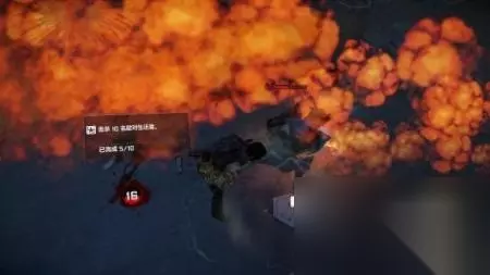 step14.弗兰克终于来到了前门,首先要击退四名暗卫军士兵,接着直升机会将一名持旋转机枪的敌人送到大卡车附近,弗兰克预先埋伏于此,当机枪兵出现后,就猛攻他背后的罐子,当罐子泄露气体,之后就会爆炸机枪兵。 要注意,旋转机枪必须要弗兰克穿着动力装甲服才能够捡起。