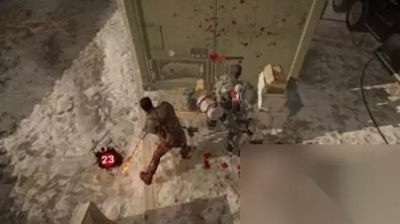 step2.沿着楼梯落到下层,在铁丝网处往下方给囚犯和士兵拍照。 接着弗兰克穿过走廊时不慎坠落到关押室当中,维克会负责打开三道门,每道门开启后都会涌出大批丧尸,弗兰克需要捡起地上的武器予以还击。 一道门打开前,硬性规定要捡取一把电击棒作战。 战斗过程中,维克发现弗兰克对丧尸非常冷血。