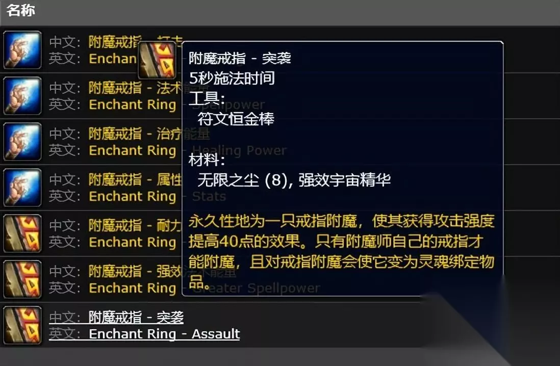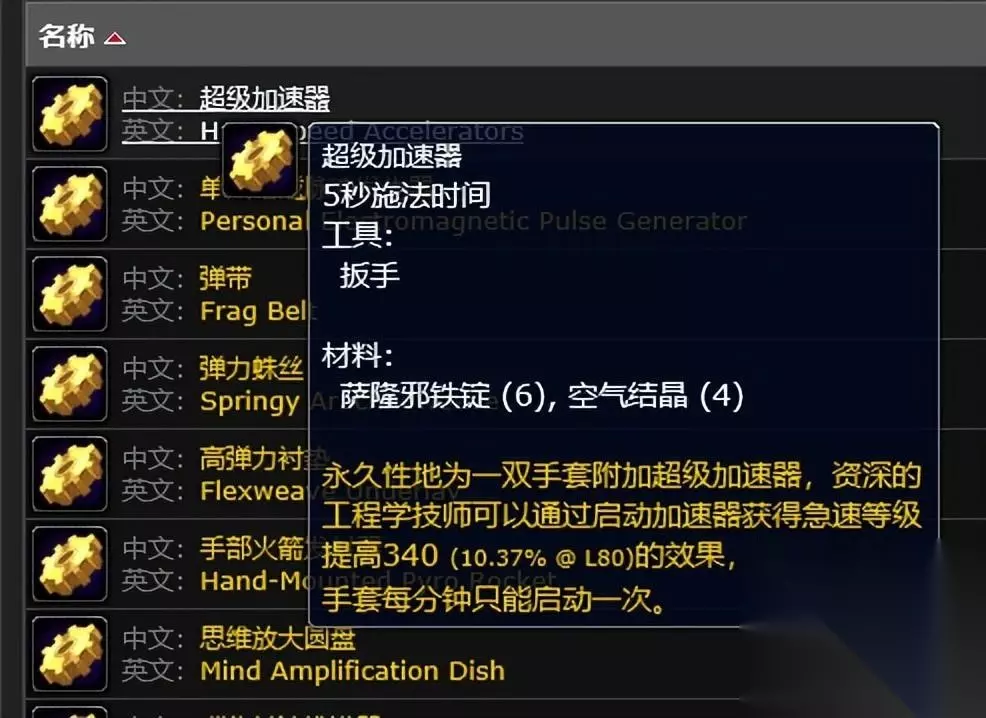 第十个项目,对输出职业提升最大的职业,可以说是输出职业必学的职业。除了各种可以增加伤害的道具之外,还可以附魔手套,有一定几率增加急速等级340点。持续12秒。
