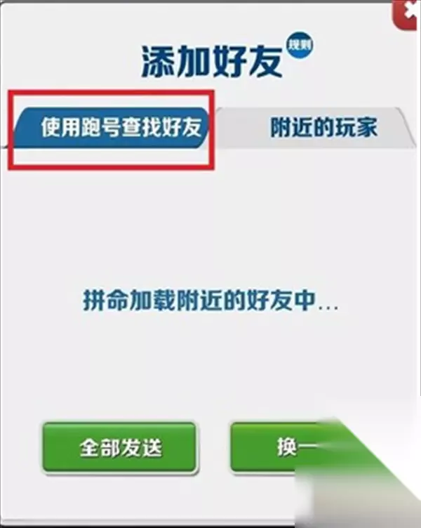 3、随后玩家需要在其中点击【使用跑号查找好友】切换到该界面;