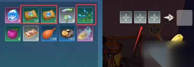 3.进入烹饪后,我们将四叶草,符文精华,天空果实放到右边的烹饪栏中