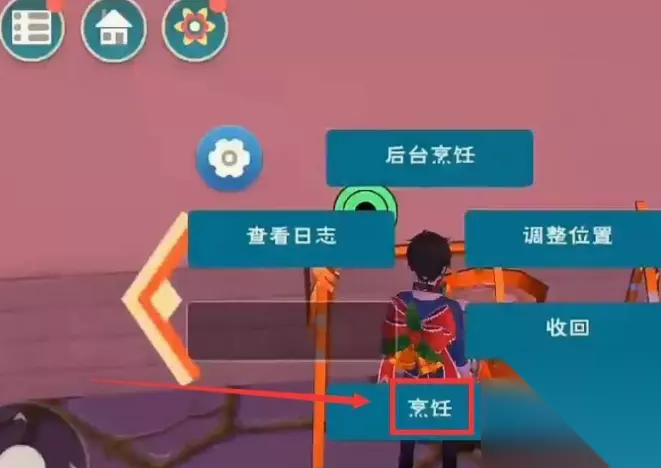 2.走到烹饪锅的旁边后,我们点击进入烹饪