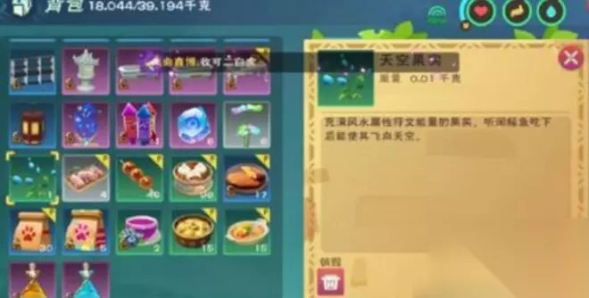 作用介绍: 1、天空果实可以用来合成天空鳐所需要吃的饲料。 2、天空果实+符文包+四叶草包=天空鳐饲料