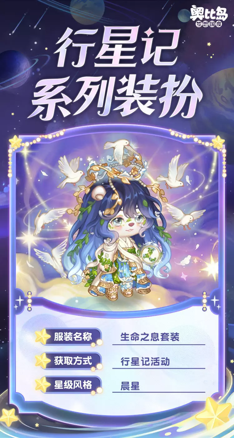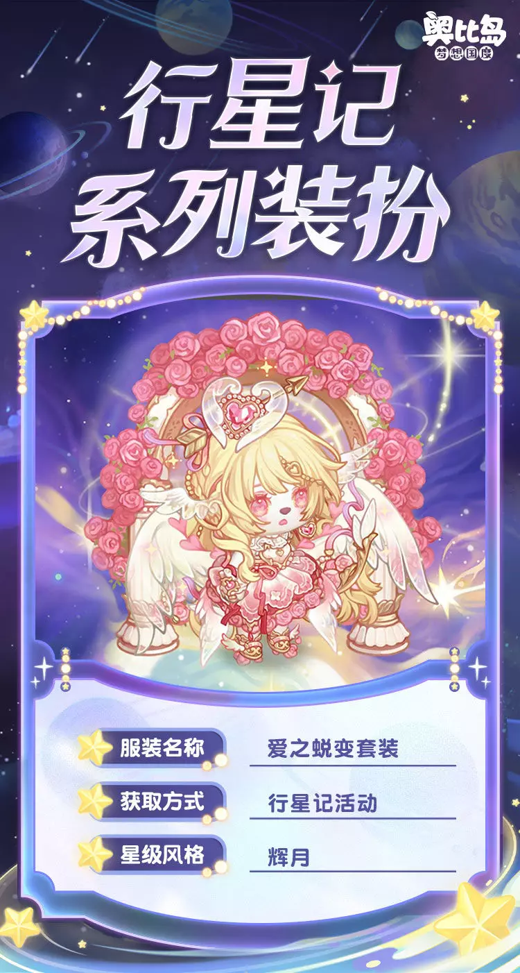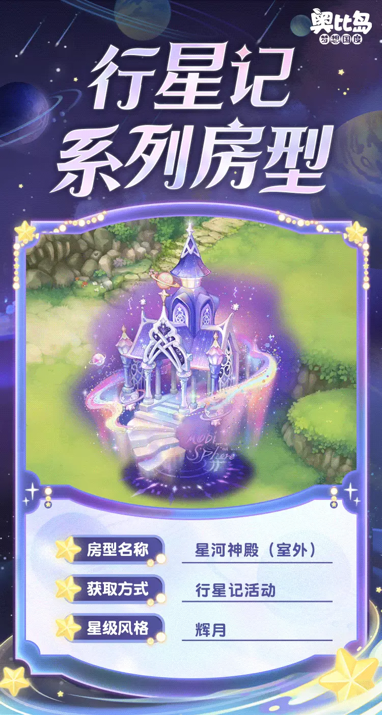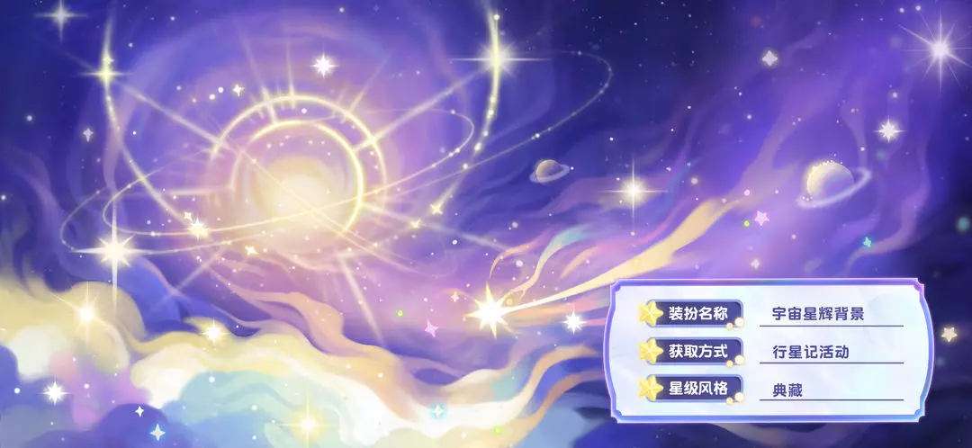 参与「行星记」限时活动,可获得活动限定奖励。奖励包括:辉月房型「星河神殿」,幻境「虹彩星球」,辉月装扮「爱之蜕变套装」「自由之风套装」,晨星装扮「生命之息套装」「时间之弦套装」,晨星装扮「生息之坪」「时砾之箱」,典藏装扮「战意永燃套装」「远宙拾星套装」,还有主题限定家具「星穹庄园系列」「星球私藏馆系列」、双人座椅「星旋流辉」、幻光「流星足迹」、头像框「纯爱礼赞」、背景卡「宇宙星辉背景」等惊喜礼物!