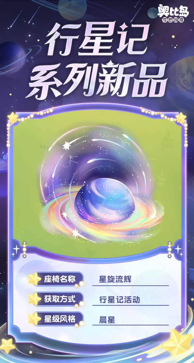 1、「流星」分为闪亮流星、璀璨流星两种,通过小奥比参与「行星记」活动完成指定的收集任务,可给全服所有的奥比发放对应的幸运流星。