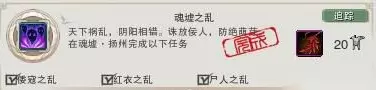 完成“永结同心”任务获得,首先需要扬州往金水镇附近的地方找到土堆挖到玉佩,随后根据流程走下来。 入定后会有任务卷轴提示,比较简单。 3.魂虚之乱
