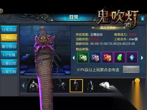【远古传说再临,十王墓穴现世】 千年粽子从泥土中挣扎拔起,那种腐尸气息,你闻过吗? 那就来《鬼吹灯3D》让你体验一次真实的古墓探险,黑驴蹄子打粽子让你激战到爽快!不过进入十王墓穴探险也并非容易,其中黑蛇放毒、人面蜘蛛、尸香魔芋、霍氏不死虫,都足够一层层削弱我们的力量,更何况还有红烛独目猛兽锦鳞蚺、见首不见尾的黑斑蚰蜒、慑人心魄的黑妖龙,都将登场在其中。举起利刃,体验真正的倒斗剧情,挑战帝王之地的神秘,谁能撑到最后?
