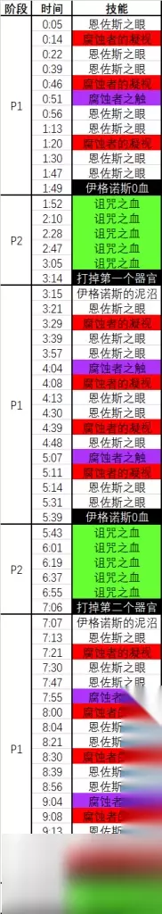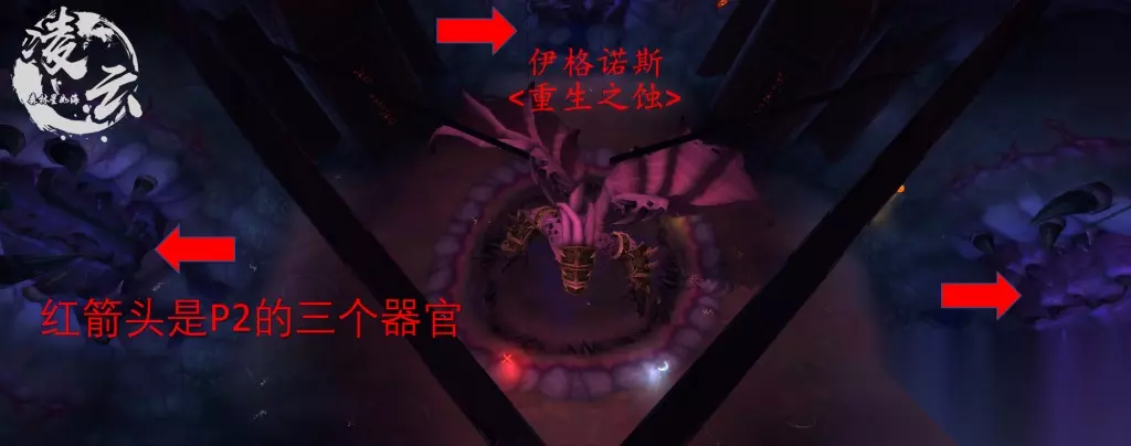 腐化的器官 三个腐化的器官在场地中生成,击败一个就会结束这个阶段并恢复伊格诺斯的生命值。 20人H难度下,每个器官的血量是2940W 第一轮P2打掉但是没打死的器官,到第二轮P2血量不会被继承,依旧全满 每轮P2,没被打掉的器官,每隔7秒会读条,每次读条2.7秒,不打断就会刷一只小软 被打掉的器官,每隔14秒就会刷一只小软