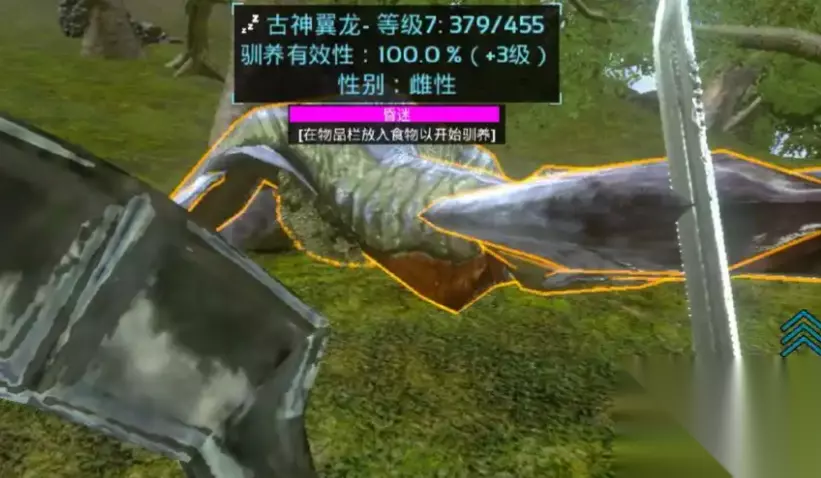 成功击晕后要马上用四个木质拒马围住它,不然其他食肉龙会来偷吃。喂食最好用异特龙蛋饲料,没有的话就用优质生肉或优质熟肉代替。驯服过程中要随时查看眩晕值,及时补充黑色浆果或麻醉药。古神翼龙驯服速度比较快,但记得全程守护,别让到手的猎物飞了。