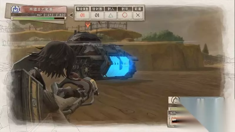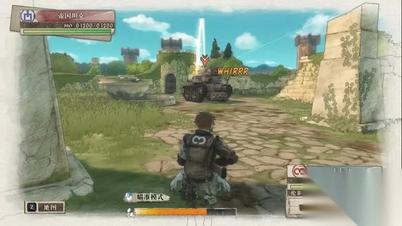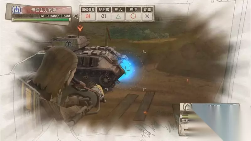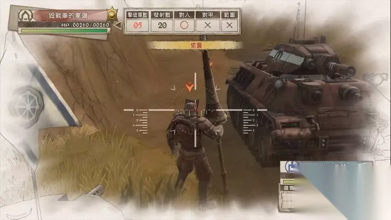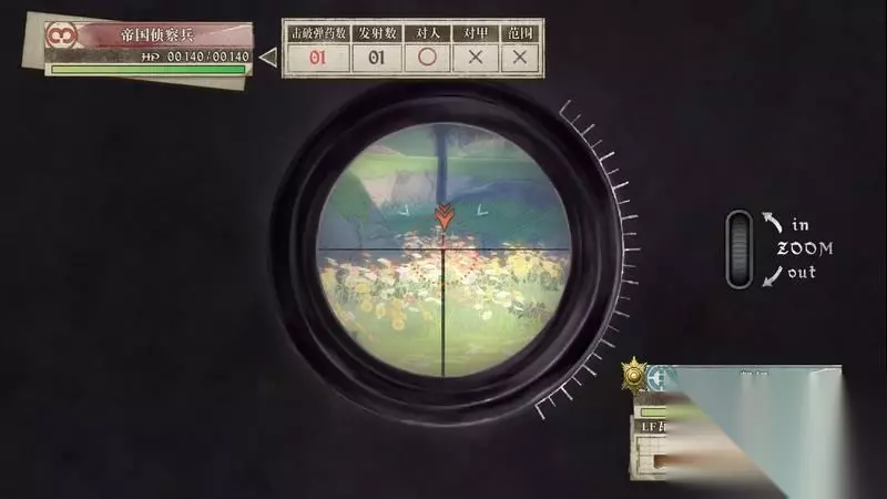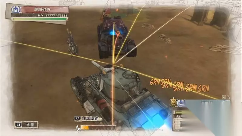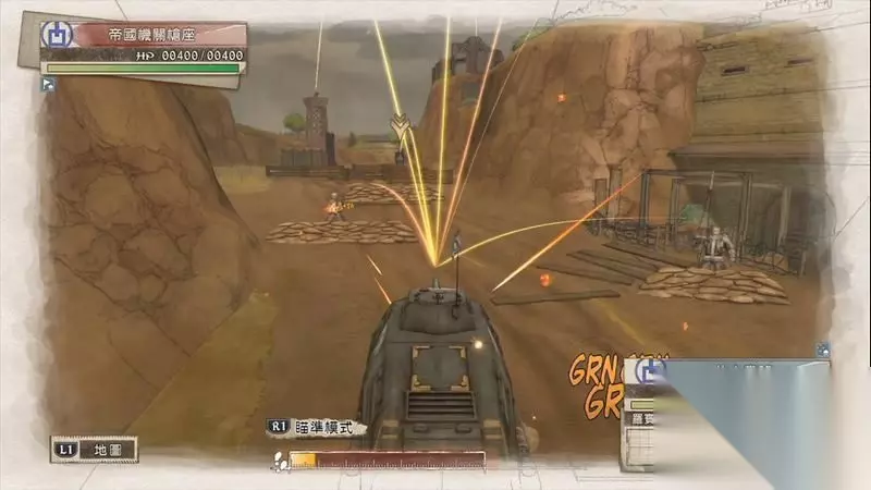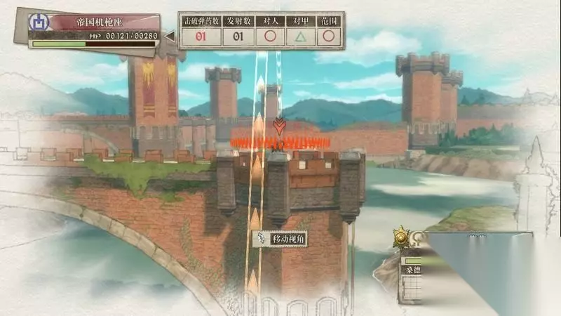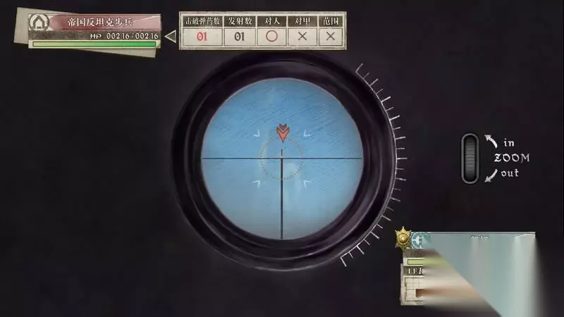 蕾莉出现后会在右边据点,可利用蕾莉可炮轰两侧的敌军炮兵。 这里秒杀敌人的技巧是瞄准敌人是瞄准时需要中间的红色圈会变高一些,这代表已经正中敌人的头部位置,同时上方也会显示1发的击破数量。 利用这种方法有概率可一炮击杀敌人。