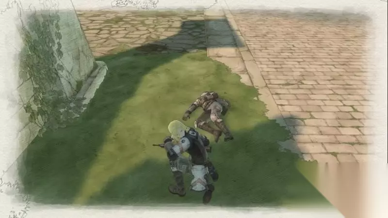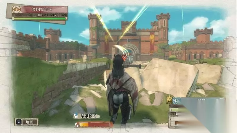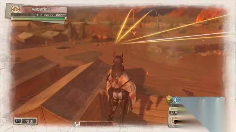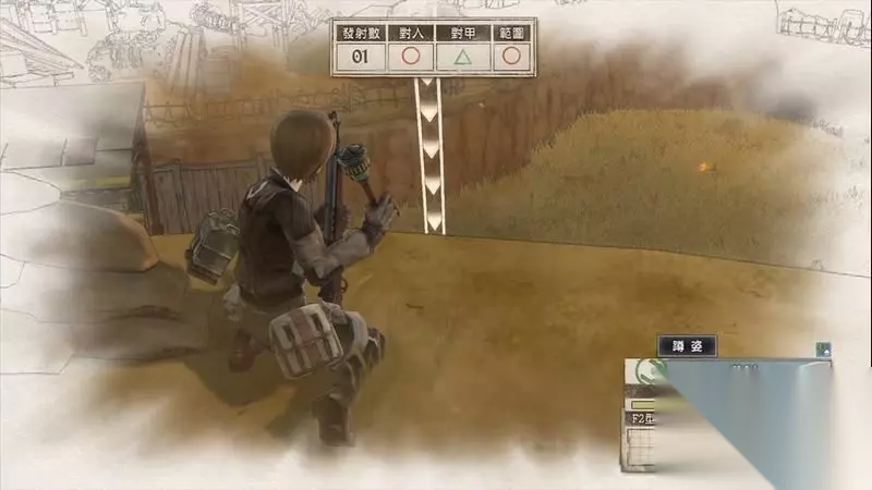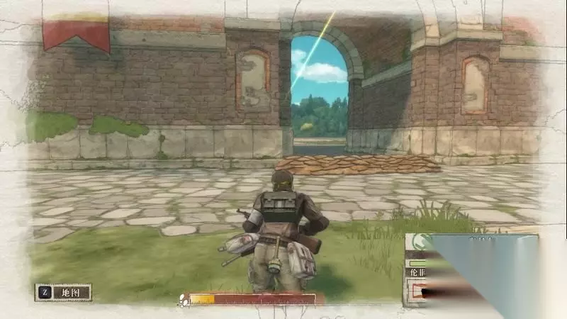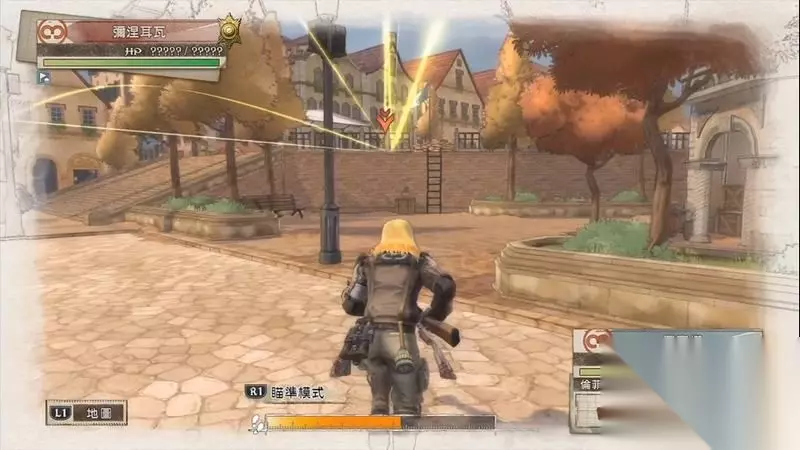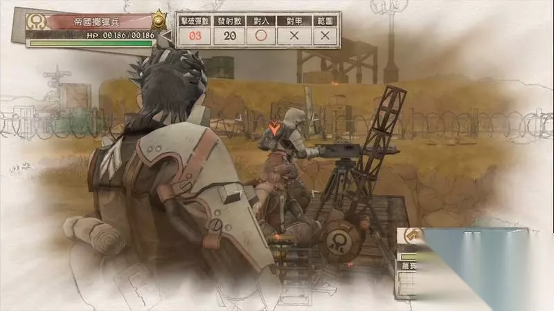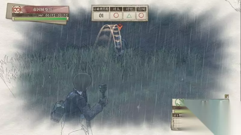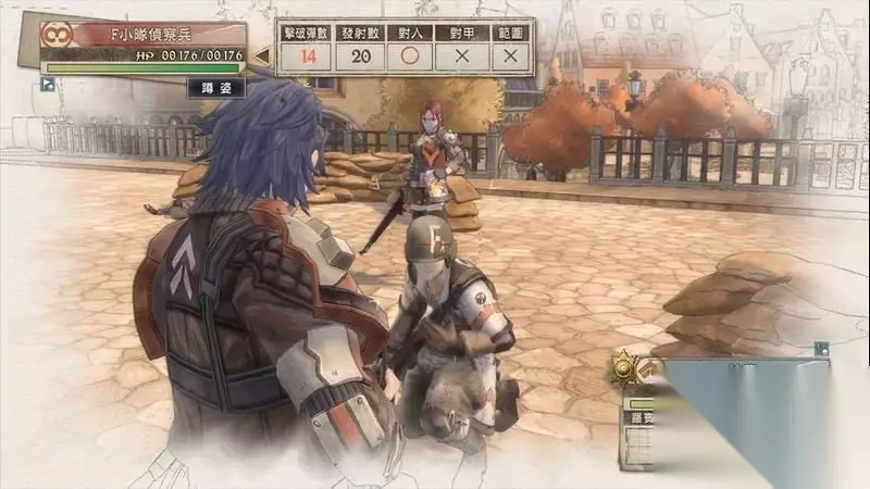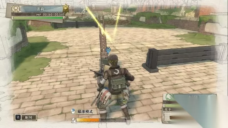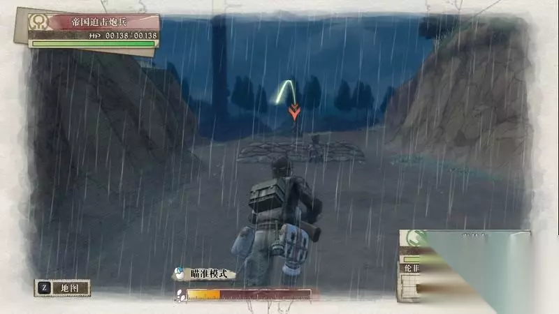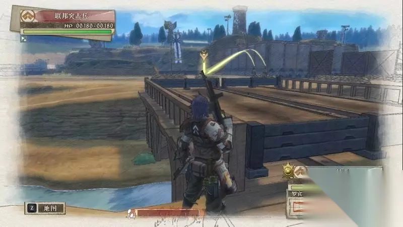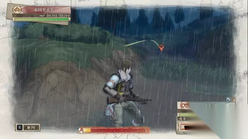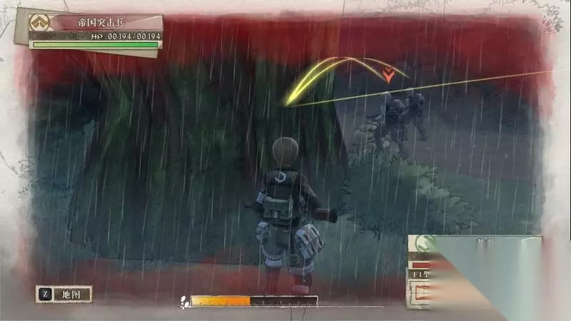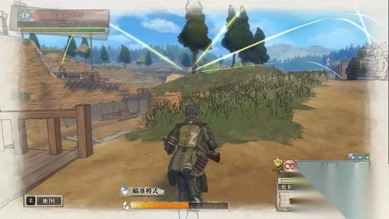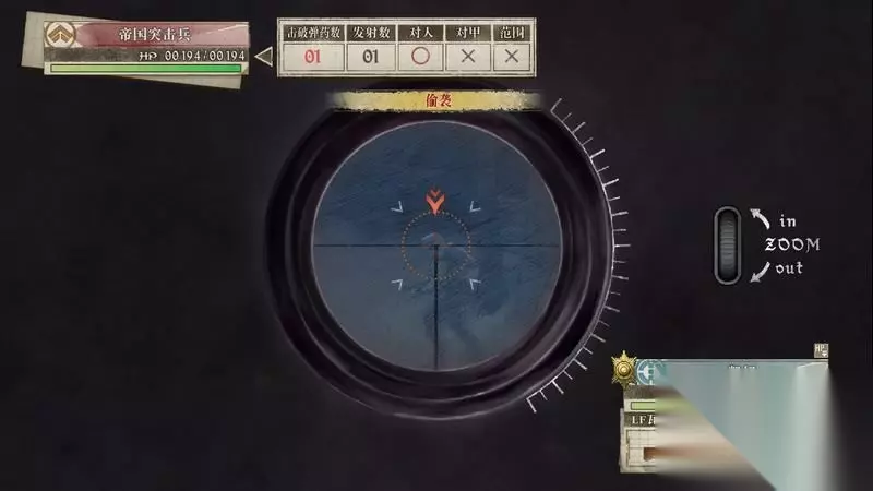 因为游戏中有奖杯需要玩家的队员达到最高军衔,除了主力队员外,一般队员开始并没有最高军衔。 因此,除了刷军衔的任务来提升军衔外,笔者这里尽量使用一般队员进行攻击获得军衔等级的提升,这里就选择妮可来进行射击。 控制妮可到第三个敌人面前爆头即可击杀最后一名步兵。