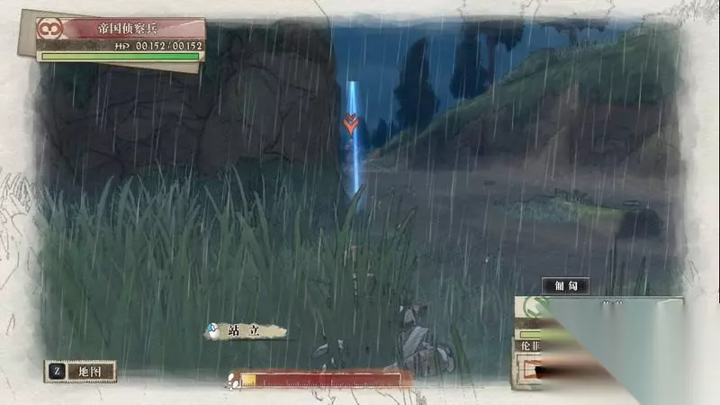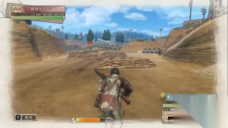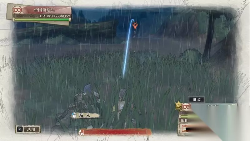 开始战斗后,拉兹会不服从指挥在地图北部大开杀戒。 先控制凯伊狙击兵往前推,将前方沙包处的两名敌人用两次CP击倒,击倒后往右侧的草丛中暂时匍匐下。