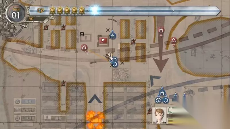 接下来是战车对抗,控制海芬号碾压障碍接近敌方战车。 此时剩余三个CP点数,可以最少利用两个点数靠近并打中敌方战车的散热器直接秒杀战车。 打完战车后,序章完成。