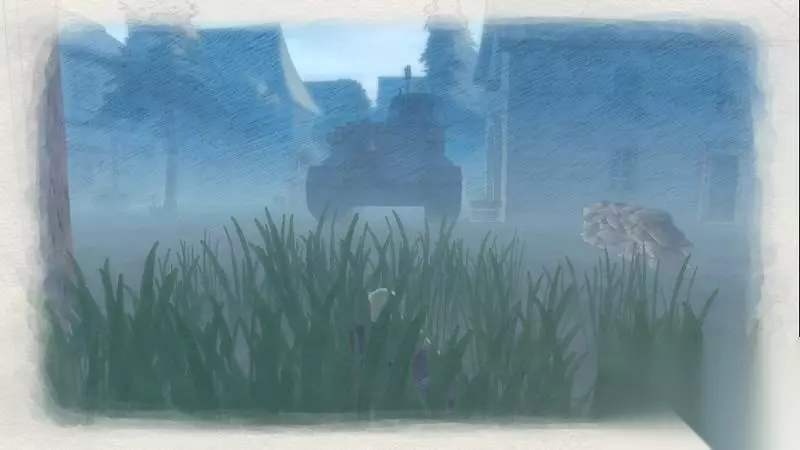 派出第二位侦察兵,沿着同样的路穿过小巷,就在小巷右拐处可发现第一辆敌军真坦克。 继续派遣该名侦察兵消耗一点CP沿第一位侦察兵行进方向的十字路口直走右拐。 这里需要匍匐在旁边的草丛中靠近并识别第二辆真坦克。
