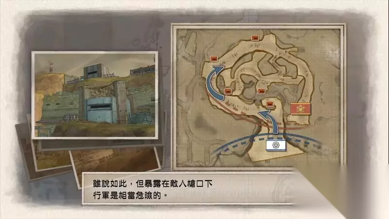 游戏简介: 一座正被战争的怒火吞噬的大陆!Claude Wallace指挥官与他的童年好友将投身于一场绝地反击,但凛冽的暴风雪,如潮的帝国士兵与女武神的天生神力将是他们赢得胜利的巨大阻碍。 配置要求: 最低配置: 操作系统: Microsoft Windows 7 64-bit 处理器: Intel Core i3 6100 or equivalent AMD 内存: 4 GB RAM 图形: NVIDIA GeForce 650Ti 2GB DirectX 版本: 9.0c 存储空间: 需要 36 GB 可用空间 攻略导读: 本篇攻略将以普通难度一周目为条件,攻略核心是获得全关卡王牌装备及S评分,包括断章内容的攻略。这款游戏的通关玩法多种多样,笔者的未必是最好的打法,不过会是以笔者总结的最优化的方式通关。 全关卡流程攻略: 序章:发动北十字星作战 以一周目普通难度开始游戏,来到序章。 序章是教学章,战场只有四名敌人和一辆坦克,按照流程提示走,本章并没有难度。