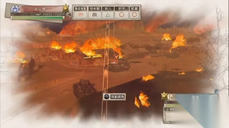 开始后,直接控制海芬号穿过火海,将右侧坦克击破。 再消耗一次CP将据点处的两名敌人使用榴弹解决。