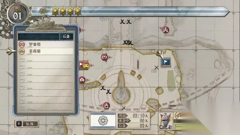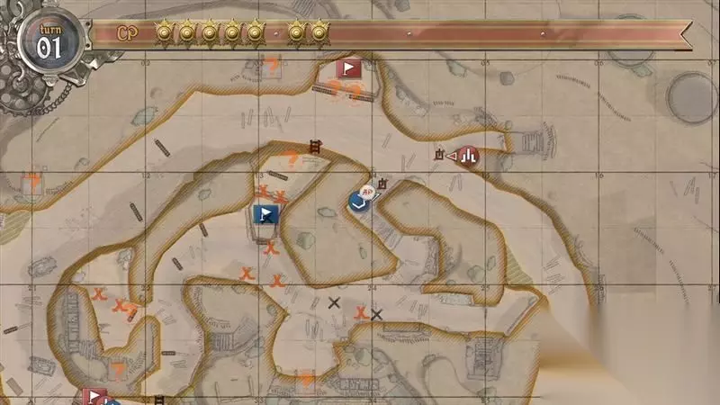 将剩余的CP用来射击该据点附近的高塔,将4射击成5即可。 剩余的AP记得找沙包掩体躲下,因为敌军回合要开始了。