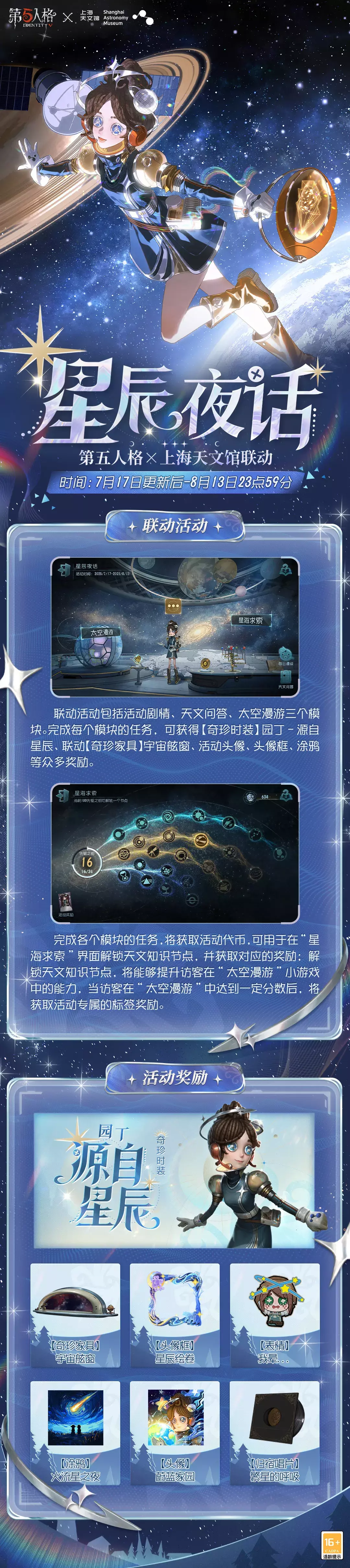 第五人格×上海天文馆联动活动【星辰夜话】7月17日即将上线: