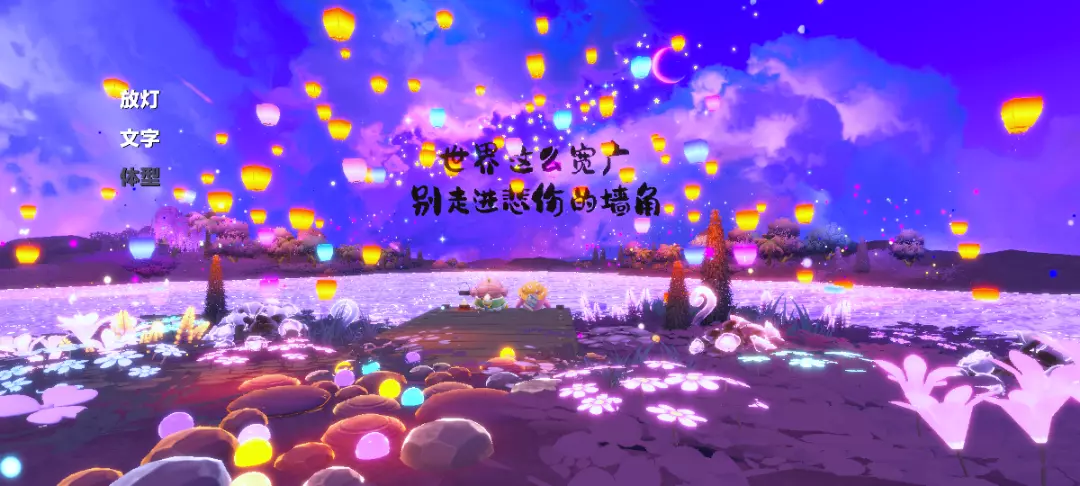 这里可以看到背景后边的打卡点哦,非常的好看呐,可以放灯哦,但只能放一次呐,文字可以点击消失和出现,体型小一点更好看哦💫