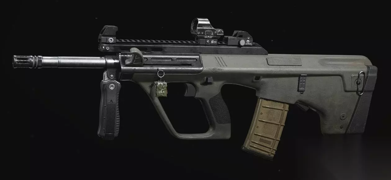 本作中的AUG默认型号为AUG 9mm 冲锋枪版本。在其基础上使用622mm枪管、整合式3x瞄准镜以及5.56mm30发弹匣可改装成标准的20寸初代AUG A1步枪。
