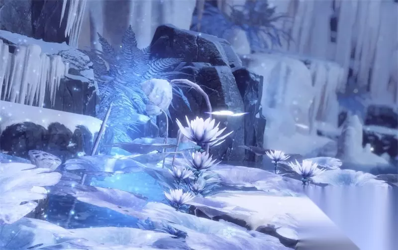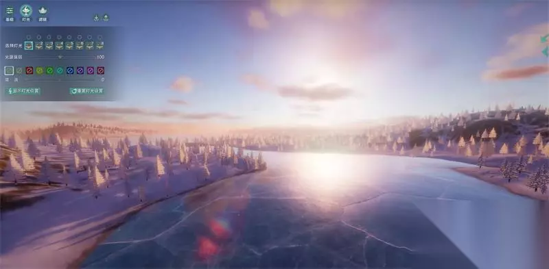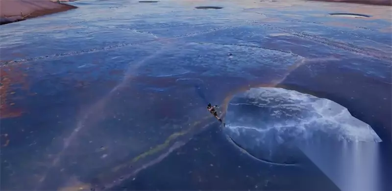 河面覆盖着厚厚的冰,但整个冰面却并不单调。有很多细致的纹理,再加上几个冰坑,让整个场景更加自然。