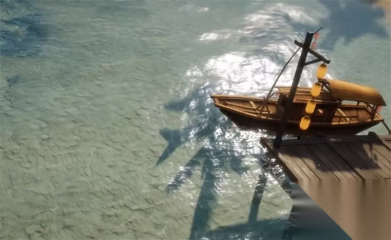 精细的贴图 当然,如果一张地图只是从远处看很漂亮,那么如果近看就变得一团乱,就不能说是精致了。小编之所以在文章开头提到这张新地图空前精致,是因为这张新地图的贴图精度实在是太高了,就算你仔细看,也经不起推敲。 我们先来说说海面。 《东海蓬莱》以岛屿地图为主,海面随处可见。对于大片海域,《剑网》并没有让海水效果太过敷衍。 开启高画质后,水面的质感和光影效果相当不错。
