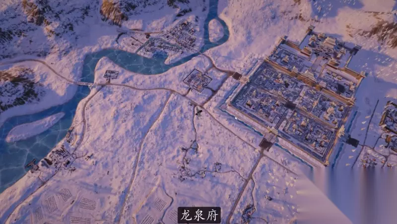 但事实上,这是一张还原东北风格的地图。除了雄伟的建筑外,还可以看到参照牡丹江打造的雪山森林和河流。