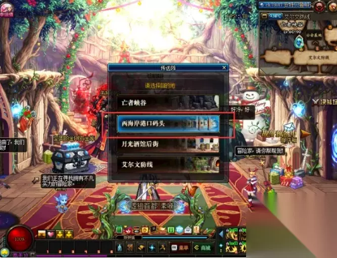 dnf青龙大会进入方法: 1、进入赛利亚房间后,移动到右侧的传送门,选择“西海岸港口码头”。