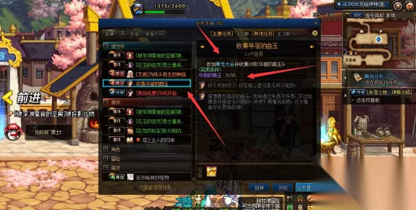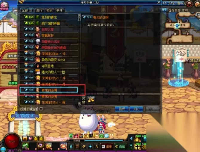 3、打开任务手册,选择“青龙的证明”任务,寻找npc阿斯卡,对话就可完成任务。