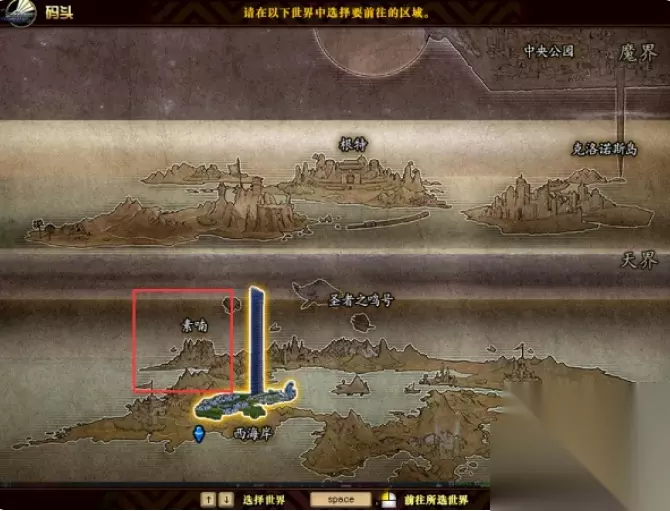 2、进入“码头”传送门,选择进入“素喃”的区域中。