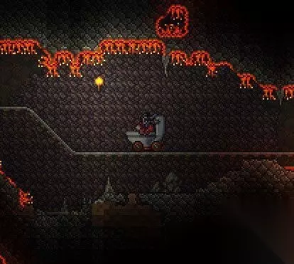 四、新的物品:矿车、装备、道具 在这次更新中有超过300个新增、或更新的道具。这里有几个比较重要的改动和新增物品,先来和大家分享一下。 1、虚空袋:虚空袋被完全更新了,在“开启”状态下的虚空袋可以起到副物品栏的效果,并且在物品栏满了的情况下,自动拾取多余的物品。在此基础上,虚空袋在这次更新中还加入了一些新的功能: 可以使用虚空袋中的食物和药水 可以使用虚空袋中的物品进行制作操作 可以快速堆叠至附近的宝箱中 如果在物品栏满了的情况下从其他收纳物品中拿去全部物品,多余的物品会被送到虚空袋中 收藏物品(防止快速堆叠) 在物品栏中提供了额外功能的物品,放置在虚空袋中时也会正常运作。包括提供额外信息的配饰、各种指南等 将负重石放置在虚空袋中不会阻止玩家、或开启的虚空袋自动拾取物品 2、新的矿车:屁车 一个会放屁的矿车,就……怎么说呢,很酷吧?