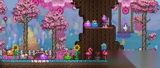 三、新的NPC:城镇史莱姆和小动物 虽然史莱姆通常被认为是一种低智商的生物,但最近发现了一种似乎是新品种的史莱姆加入了居民阵营。泰拉瑞亚的居民们将他们称为“城镇史莱姆”,因为他们明显有着更贴近于居民们审美和习惯的生活方式。目前加入我们的有8位新的史莱姆朋友: