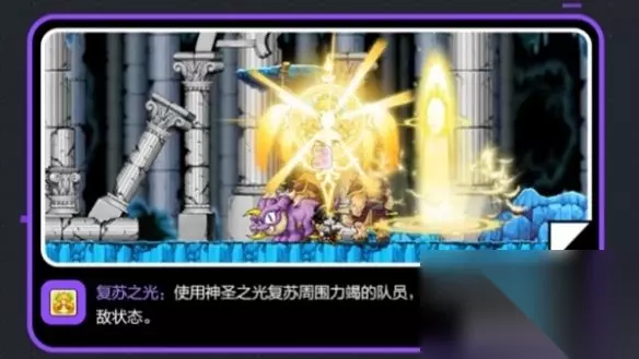 4、技能【复苏之光】:通过神圣之光复苏附近即将死亡的队友,并且一定时间内,复活的队友会处于无敌状态。