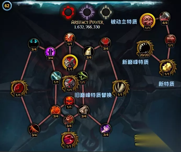 魔兽世界7.2神器系统调整一览,满特质易满巅峰难,军团再临7.2版本神器系统将会有较大的改革,在近日测试服更新后又添加了不少新的内容,和小编一起来看看魔兽世界7.2神器系统调整一览吧! 特质系统 7.2版本添加了6个新的特质,一排新的特质树,并且删除了原来的巅峰特质。