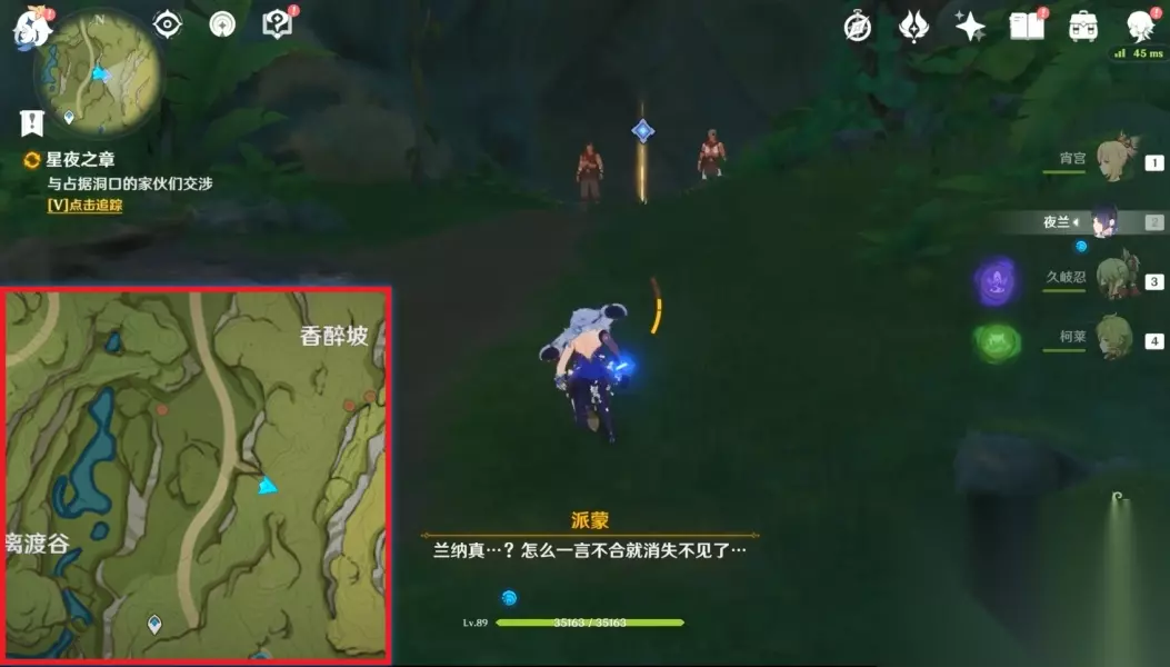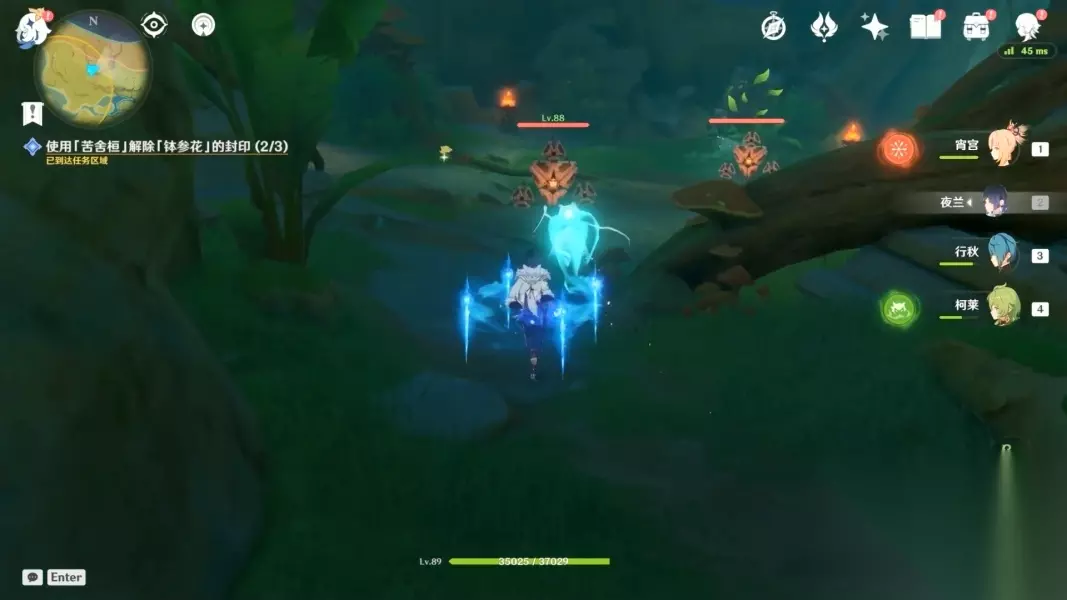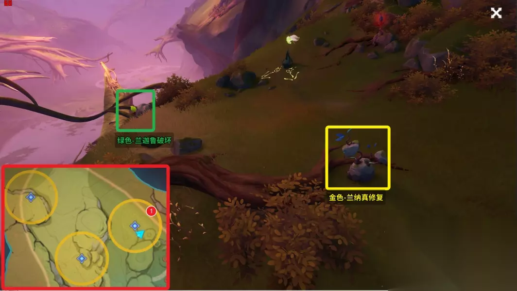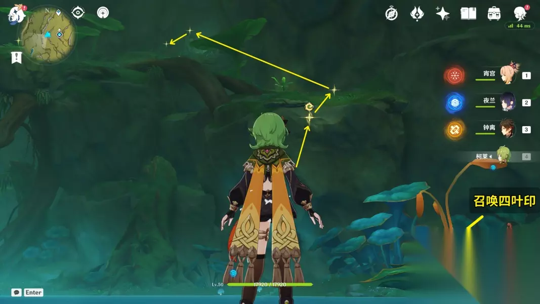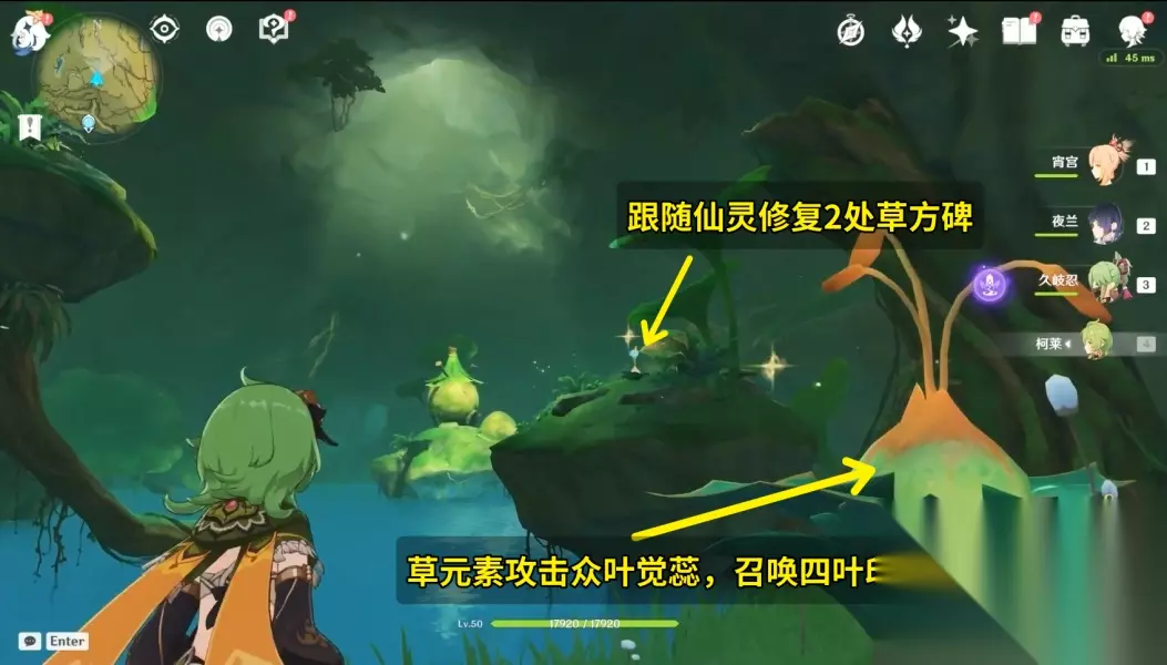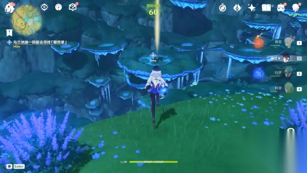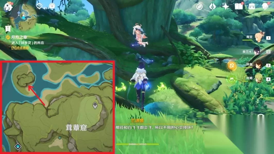 12.拾取「钵参花」 (3)终章 1.前往无郁稠林 2.和兰那罗对话 3.与兰纳迦一同前去寻找「耶然草」 这部分的跑点建议都从高处的传送锚点飞下去找,一目了然。