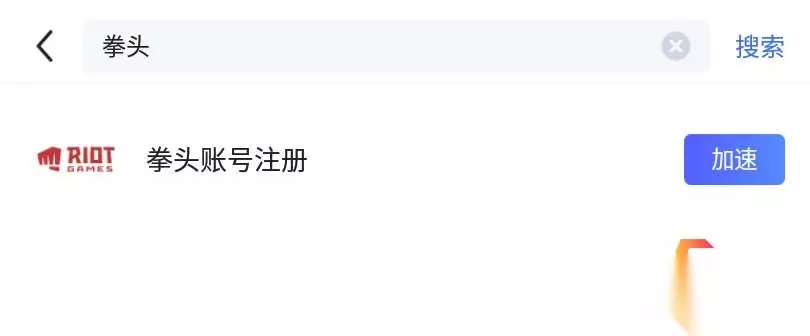 2、注册账号 安装好游戏之后,我们还需要注册一个账号才可以登录游戏,依然还是打开biubiu加速器,搜索“拳头”,可以找到“拳头账号注册”,通过它就可以注册一个拳头账号了。