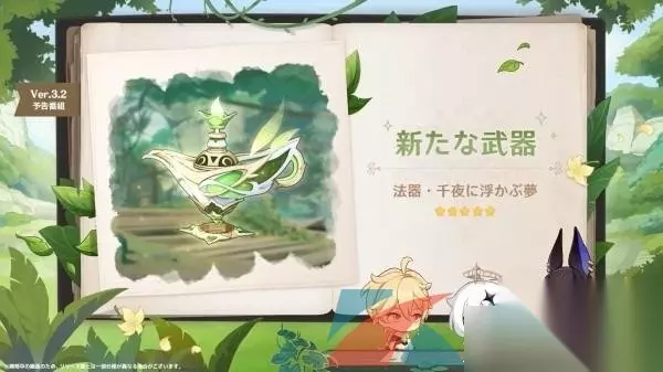三、武器介绍 1、在3.2版本中将会上线全新的武器千夜浮梦,是草神纳西妲的专属武器,也是一个五星的法器武器; 2、剩下的武器是对应复刻角色的专武,如果有复刻的武器,建议玩家们抽取角色即可;
