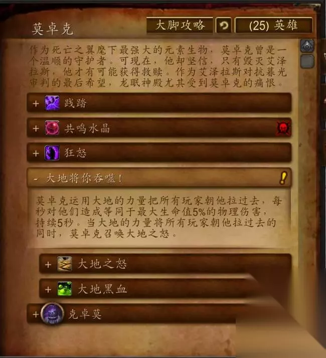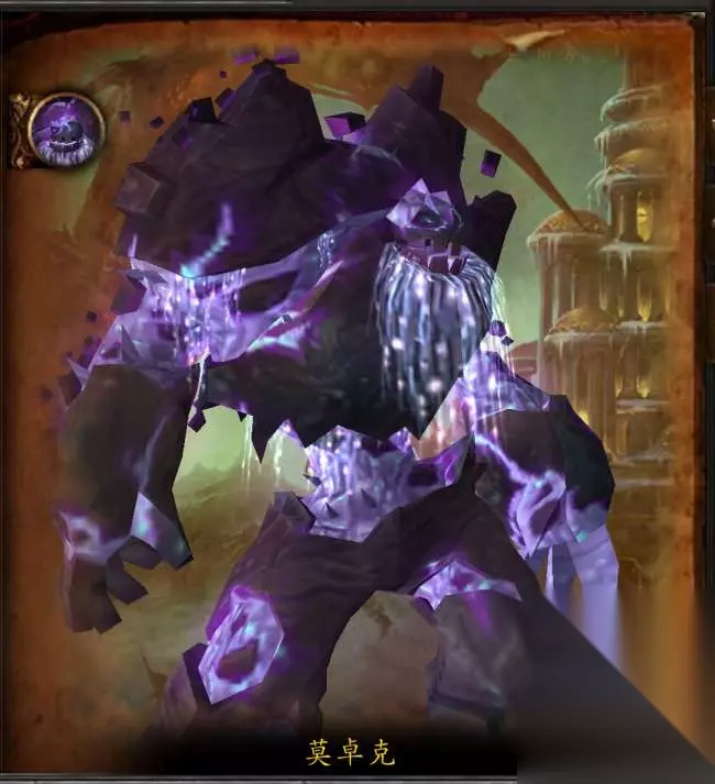 副本首领莫卓克 作为死亡之翼麾下最强大的元素生物,莫卓克曾是一个温顺的守护者。可现在,他却坚信,只有毁灭艾泽拉斯,他才有可能获得救赎。作为艾泽拉斯对抗暮光审判的最后希望,龙眠神殿尤其受到莫卓克的痛恨。