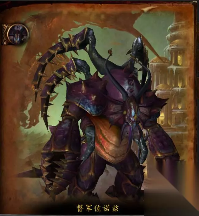 督军佐诺兹 无数个世纪之前,督军佐诺兹和他的士兵们对克苏恩和尤格萨隆发动了无休止的战争。数千年过去了,可这个督军依然听命于上古之神恩佐斯的混沌统治。现在,死亡之翼释放出了这个传奇无面者,想靠他来消灭龙眠神殿的守护者们。