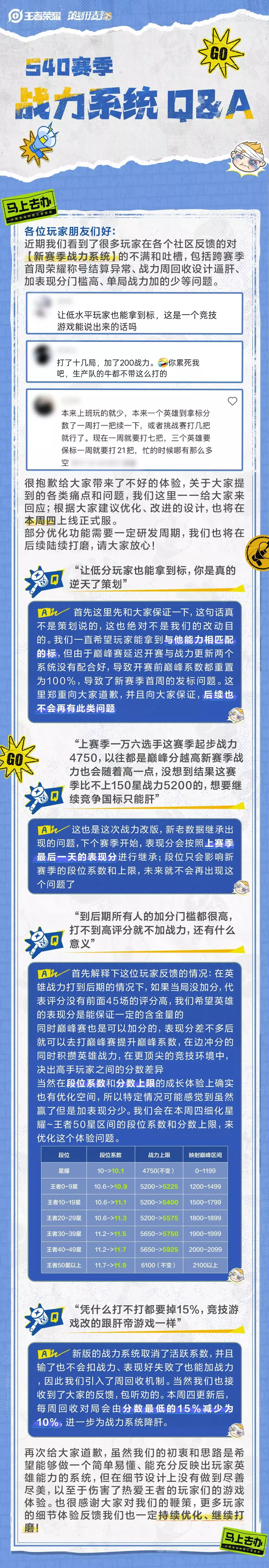 关于S40赛季战力系统,我们近期观察到了很多玩家的反馈和吐槽;非常抱歉给大家带来了不好的体验!