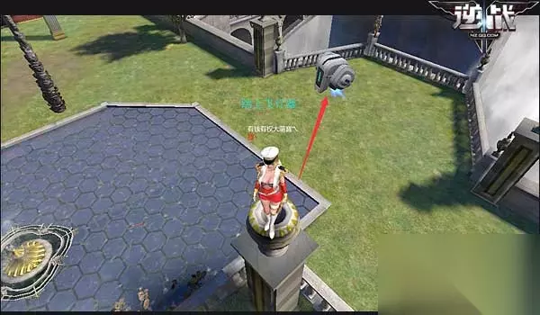 如图,玩家先跳上花瓶(此花瓶就要雕塑前方),之后当飞行器转角时就跳上去。 此方法非常考验玩家的判断能力,如果一个不到位,就肯定就会与飞行器擦家而过。 当跳上飞行器时,千万不要傻呆着不动,因为飞行器在这段时间里会经过几个转角,倘若自己站着不动,那肯定会被活生生的从高空甩下去。