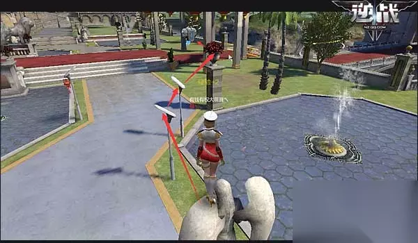 如图,先跳上雕像,按照箭头所标记的路线,再一步一步从路灯跳到花堆里,之后再等飞行器来到花堆前挺稳后,再跳上飞行器上。之后等飞行器起程,开始上升时跳上前方的高桥。 在跳路灯的过程中,千万不要心浮气躁,路灯的能够站立的地方很小,如果有一丝失误,肯定会越过路灯,一定要调整好自己当前所站立道具的位置,把握好跳跃的时机,幅度。