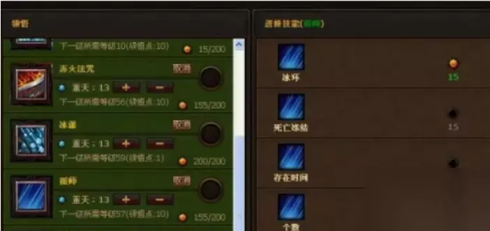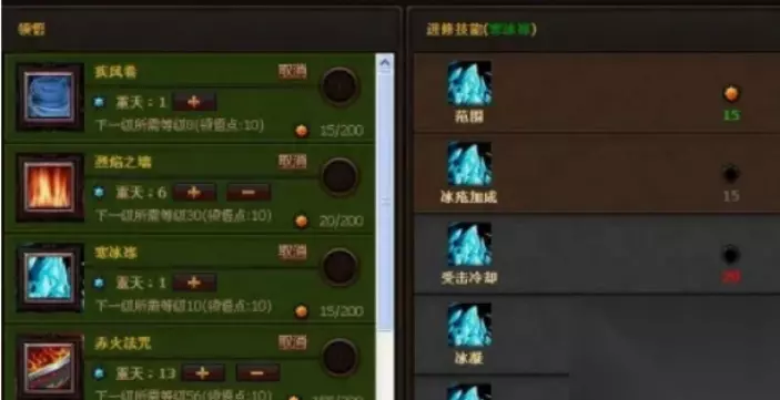 5、冰瀑 冰瀑13重天,精修点点出范围、冰冻、冰霜诅咒、火瀑、存在时间10点、伤害增强点满。