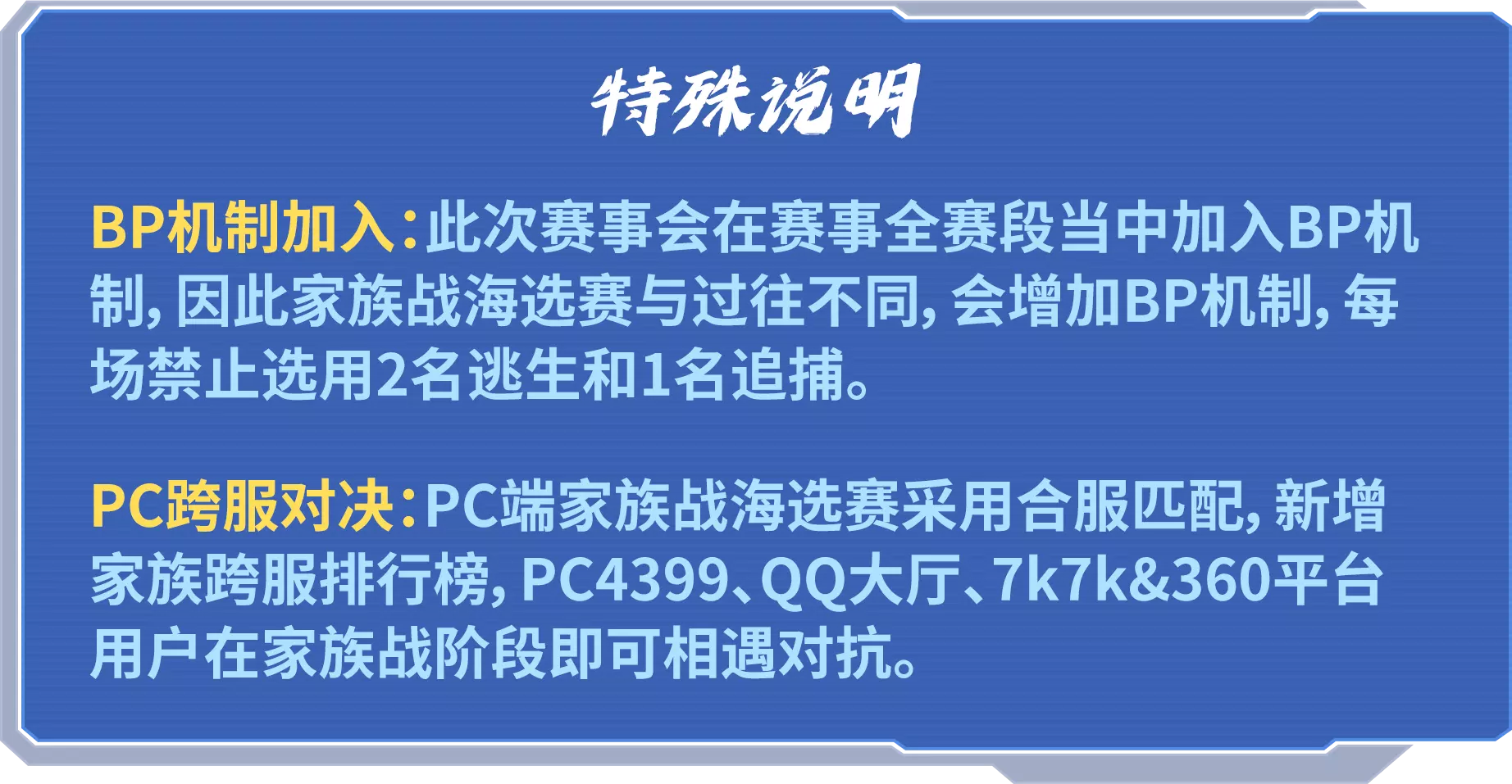 A7:海选赛结束后,晋级小组赛的族长需提交10~15人的后续参赛名单,后续赛程替补上场人员以提交的名单为准;替补人员需在海选赛段后至少上场1次才能享有获奖资格。