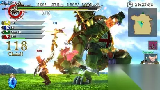 在绚丽的色彩、精细的贴图包装下,这部作品从操作到系统架构都像是MH的翻版一样。剑斗士、法师、猎人、刺客、巨锤铁匠、牧师六种职业各自使用招式、性能完全不同的6种武器去完成各种各样的章节。一般来讲每一章都以小怪清理为铺垫,最后守关的当然就是巨大的BOSS,通过之后进入下一章能够获得更高级的武器、道具以及卡片。不过总的来讲游戏难度并不会随着玩家的等级提升而显著下降,始终保持在相对较难的程度。
