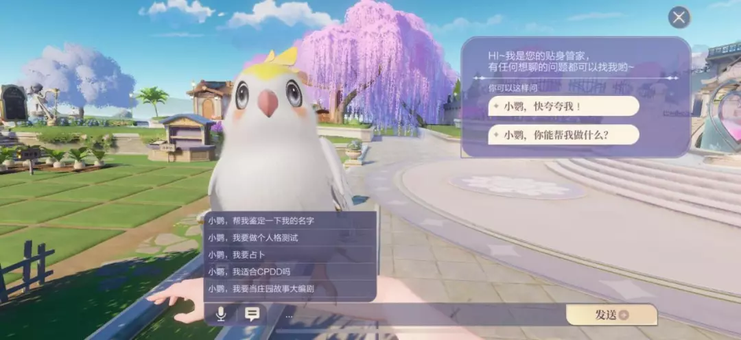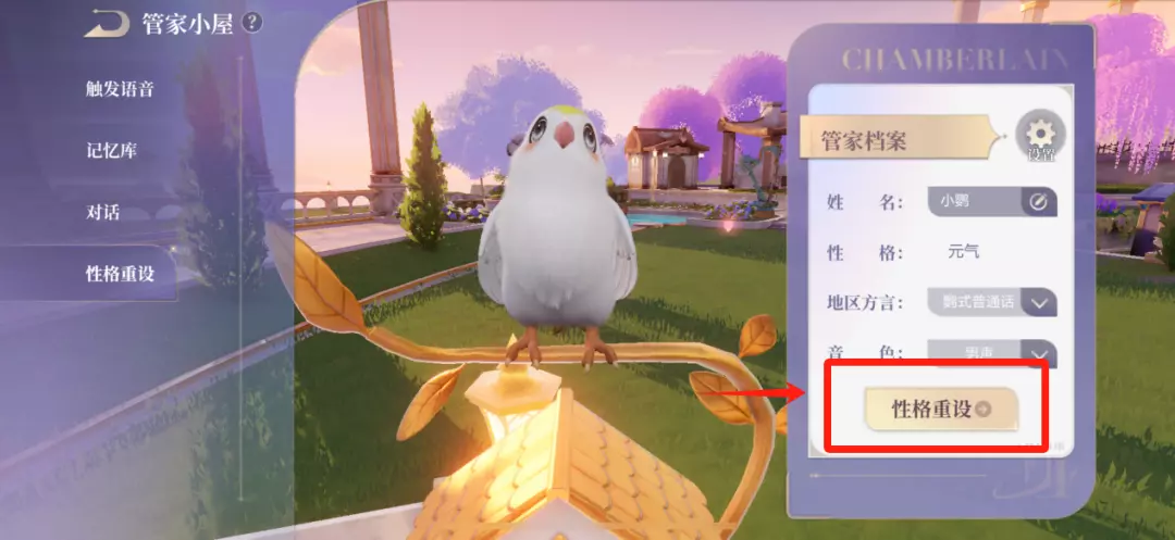 小鹦的性格和音色不喜欢的话可以去入口处的智多鹦小窝,点击“性格重设”页签即可修改。